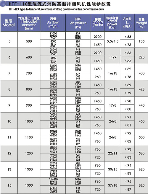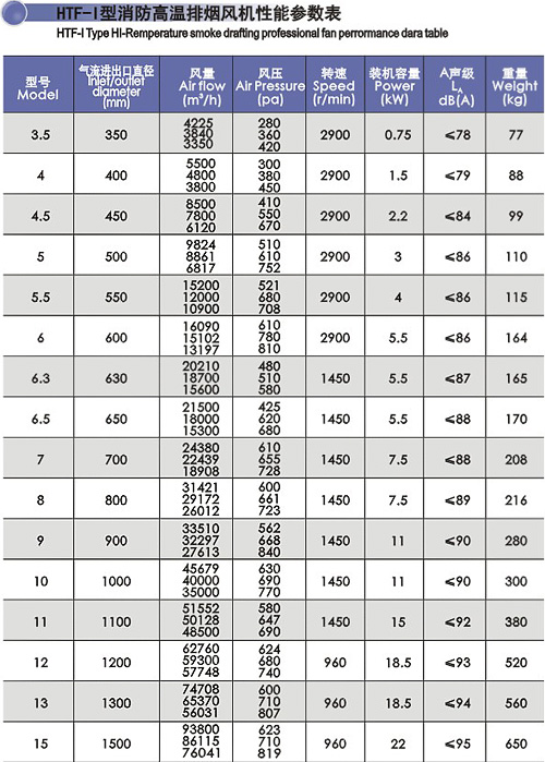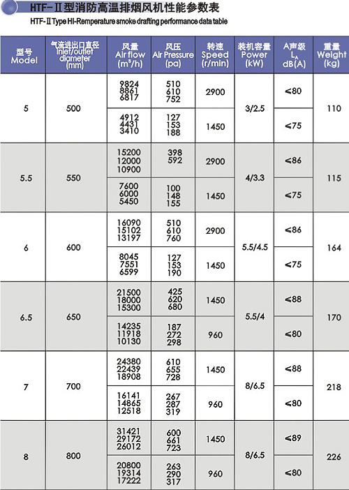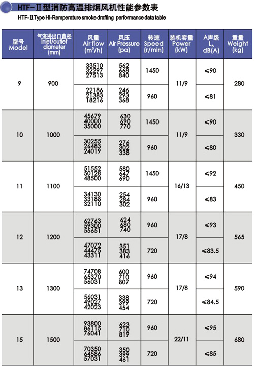 HTF系列消防高温排烟风机由上海交通大学、AG尊时凯龙人生就风机厂共同研制开发,其特点有:①耐高温性能优良(在400℃高温条件下可以连续运行100分钟以上,100℃温度条件下连续运行20小时不损坏);②适用范围广根据高级民用建筑的不同要求,采用变速或多速驱动形式,以达到一机二用,即常用通排风和消防使用时高温排烟的目的);③效率高;④安装方便,占地较离心风机小。