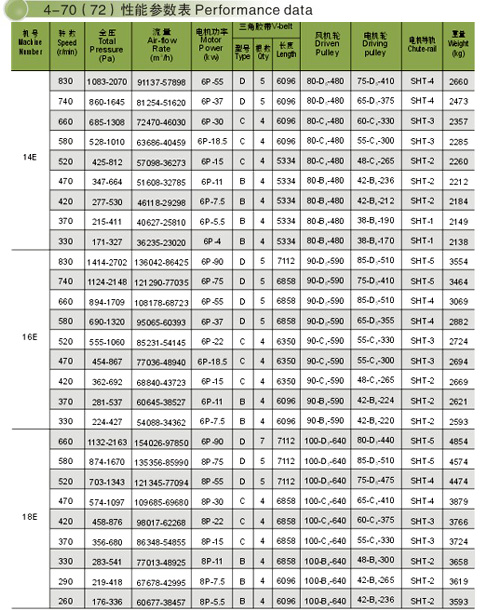 | 4-79、4-70(72)型离心风机是引进日本ミツヤ公司的先进技术并通过本公司工程技术中心进行吸收、消化、创新研制而成,其性能指标优于我国通用的4-79、4-72型离心通风机。该风机噪声较老式风机低5~8dB(A),外形尺寸也较老式风机紧凑,效率及比A声级优于机械工业部制订的标准。4-70型通风机共15种机号,风量930~154000m3/h,风压170~2950Pa;4-79型通风机共20种机号,风量1100~438000 m3/h,风压230~3320Pa,用户可根据不同参数选择。 本系列风机广泛应用于各类大中型工厂和高级民用建筑、大型广场输入和输出气体的室内换气通风。如客户有特殊要求,本公司则可以根据用途不同,选择不同材料制作成防爆、防腐、耐高温型风机,以满足广大用户的需要。 该类风机因效率高、噪声低、运行可靠而畅销全国各省市,还出口世界各地。 |
